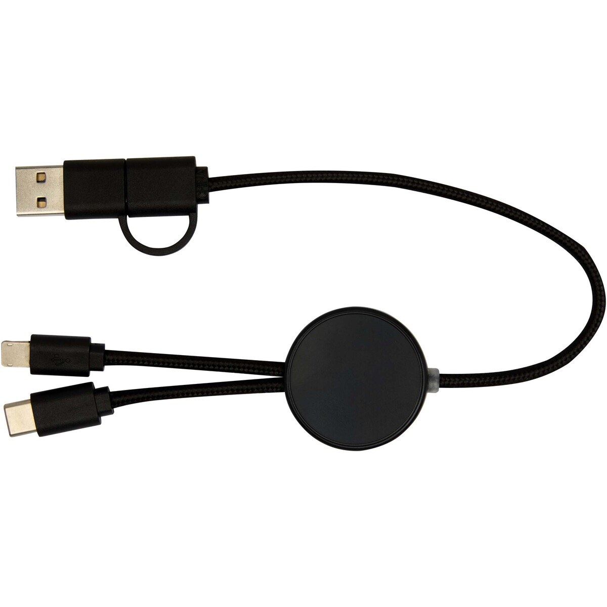 Citala 5-in-1 recycled plastic 30 cm data sync and 27W fast charge cable - EgotierPro 124427 - Solid Black